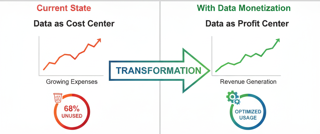 The strategic imperative is clear: Every day you delay data monetization, you’re paying full costs for assets that generate zero return while competitors build data-driven competitive advantages.