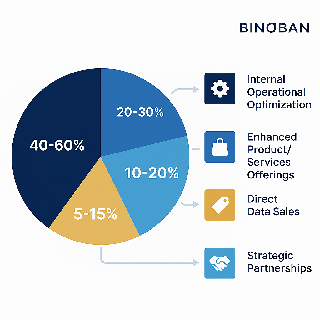 Data monetization generates returns through four distinct channels, each with different ROI characteristics: